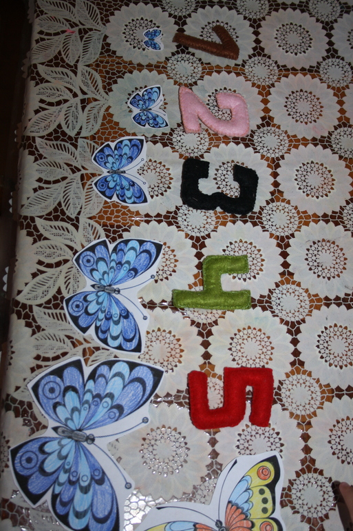 3. Расположили бабочек по размеру и расставили цифры-посчитали: