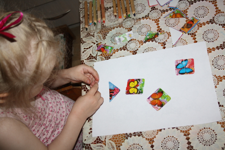 4.Соотнесли большую и маленькую бабочку (соединили линией).