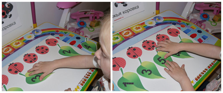 6. Считали точки на божьей коровке и давали соответствующий листик с цифрой
