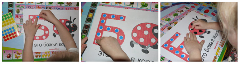 1. На букву "Б" клеила наклейки, на божьей коровке точки делала пластилином.