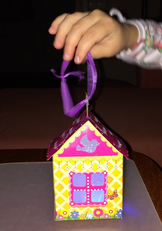 Вообще-то, этот фонарик вполне себе обычный светильник:) Но мы решили, что это будет сказочный домик, который мы поставим под ёлку или даже повесим на неё.