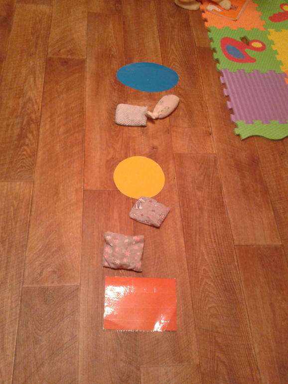 Вот по такой дорожке мы ходим,. вначале мы эти мешочки трогали руками, а теперь ногами))))я уже про них писала.