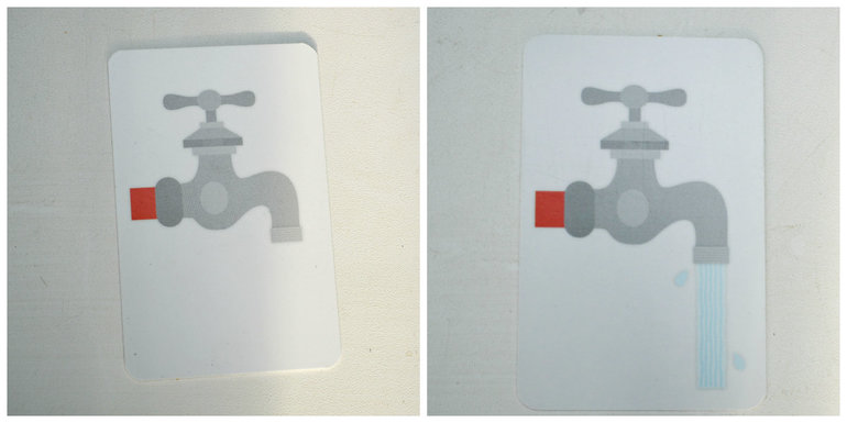 вот кран, а на обратной стороне - нарисовано как из него течёт вода