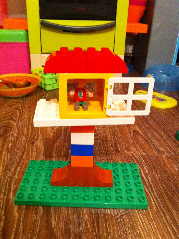 А как забраться в избушку? Построить лестницу. Софья предложила такой вариант… Я бы конечно сделала стандартную лестницу. Вот что значит чистый детский разум, свободный от стандартных решений.