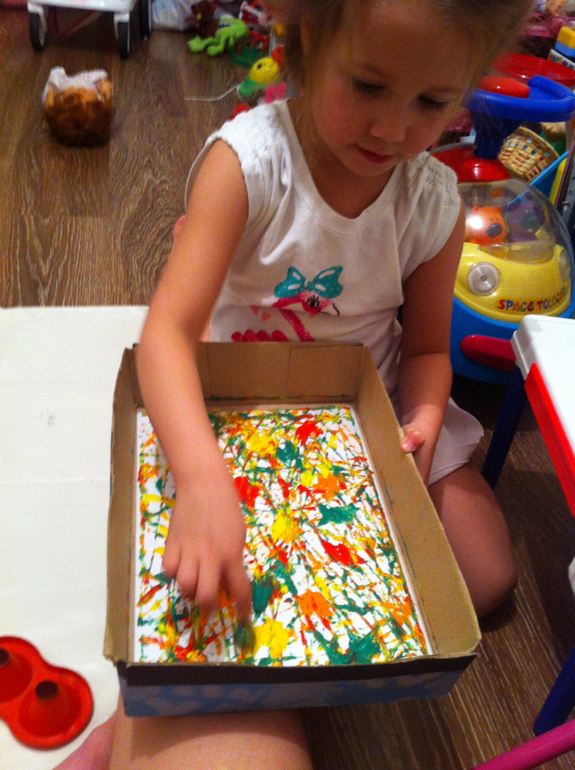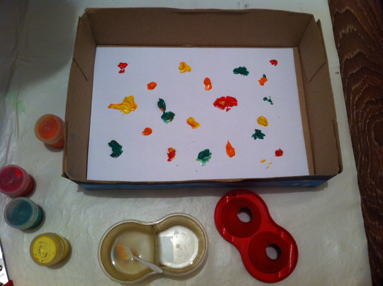 Ну и немного творчества. Рисуем стеклянными шариками. Вот такие полотна у нас интересные получились.