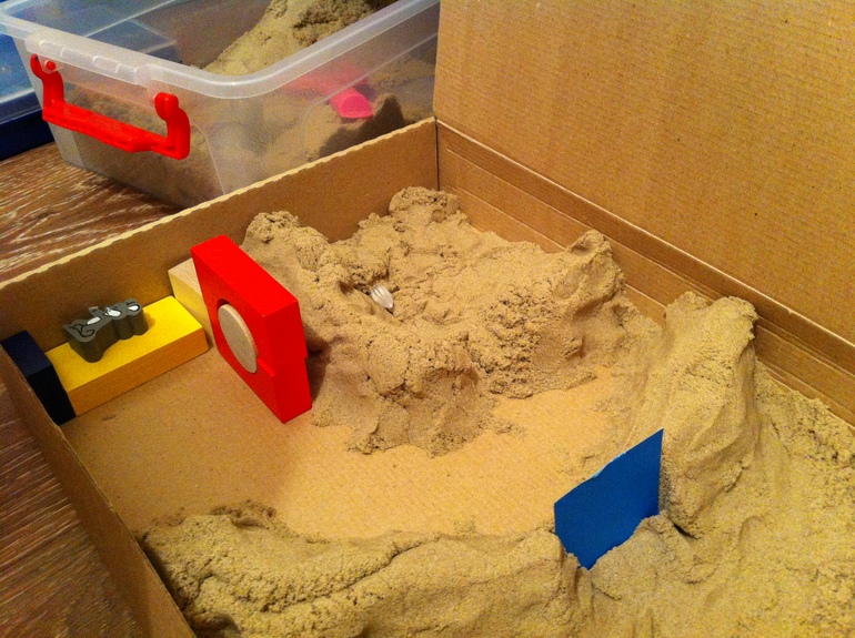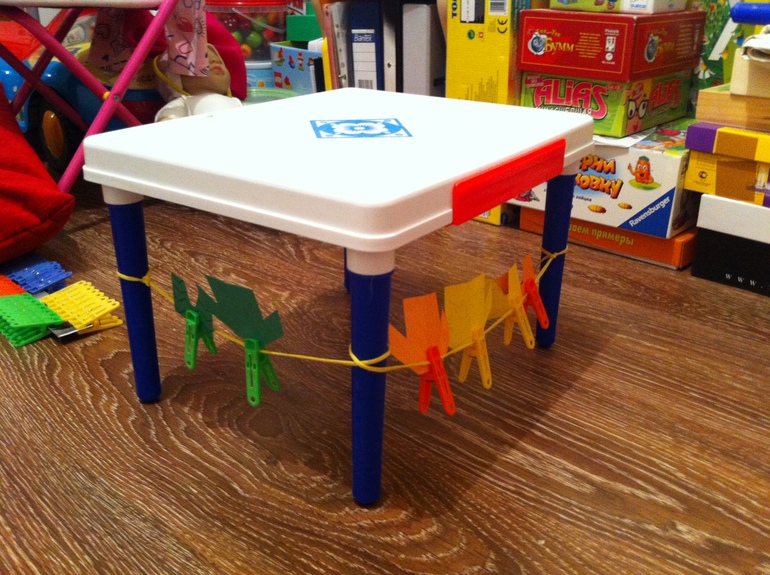 Предложила дерево из палочек. Предполагалось, что нужно ветки опустить, но что то Соня никак до этого не могла додуматься, пришлось натолкнуть на эту мысль.
