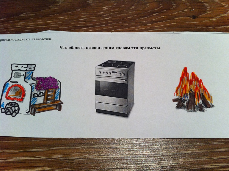 Придумывали слово, которое могло бы объединить эти три предмета. Доченька сказала, что эти предметы все «ужинные», ну понятно, т.е. с помощью всех этих предметов можно приготовить ужин. Называли множество обобщающих признаков.