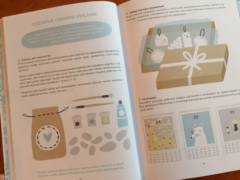 Книга будет прекрасным подарком такой несобранной маме, как я :) Да, многое из этих идей можно отыскать в интернете, но очень удобно, когда все здесь, под рукой, как справочник - открыл и делай. Лично у меня куча закладок в разных местах, как сделать то, как это... Но когда я начинаю их искать, в нужный момент вечно ничего не находится и приходится снова рыскать по интернетам.
