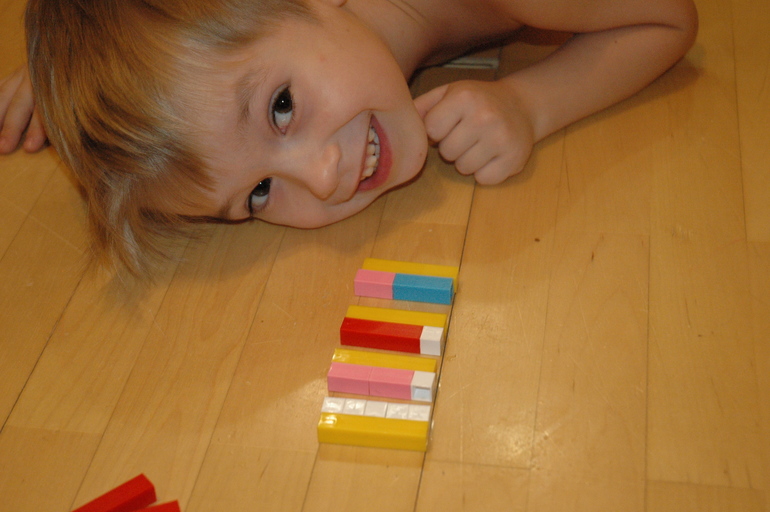 Почитали сказку "Про Козленка", посчитали, достали всех зверей и палочки Кьюзенера. Расставили всех по порядку.