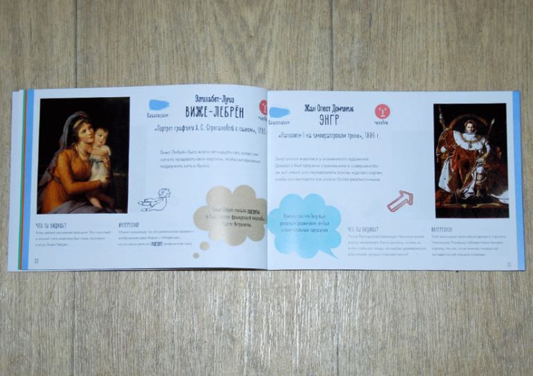 Вообще это пособие для более продвинутых "пользователей", которые хотят углубить свои знания об искусстве. Минус этого издания - это то, что представлены картины только зарубежных художников. Но с другой стороны очень интересно поискать самостоятельно картины русских художников, которые относятся к представленным направлениям.