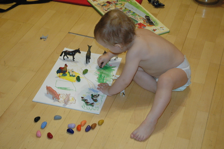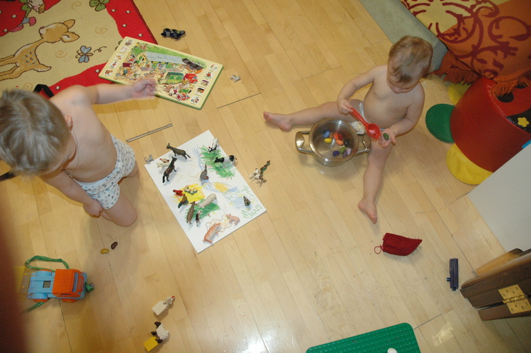 Вообще Аделя достаточно быстро понимает что надо делать и воспроизводит то, что делает Матвей. Поэтому большую часть внимания я концентрирую на Матвее, Аделя при этом очень активно включается в наши игры, а вот если начать играть только с Аделей, то она отказывается и сразу начинает заниматься своими делами.