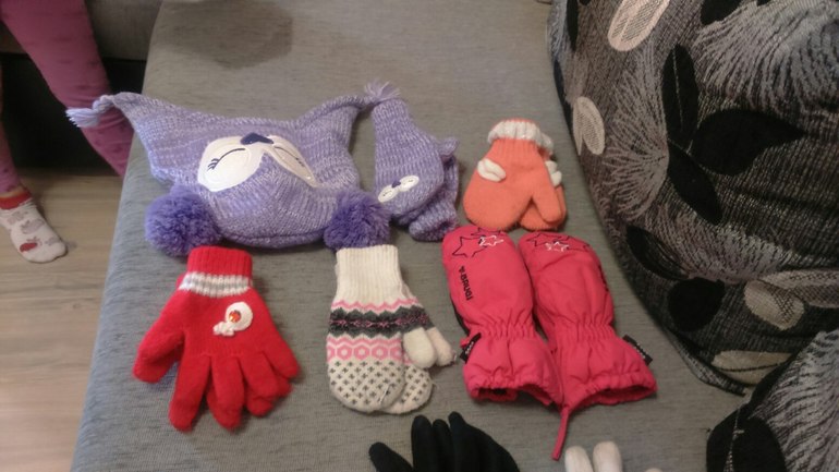 Разобрали перчатки-варежки, разложили по парам.