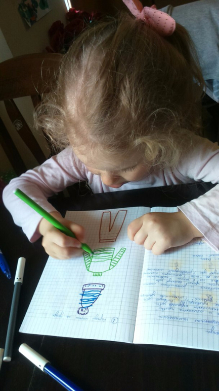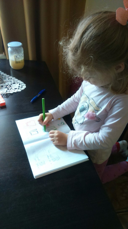 Арина так просила еще задание написать, что пришлось придумывать по ходу) "Завязывали" шнурки на ботинках. Арише нужно было провести линии - "зашнуровать" вторую пару обуви.