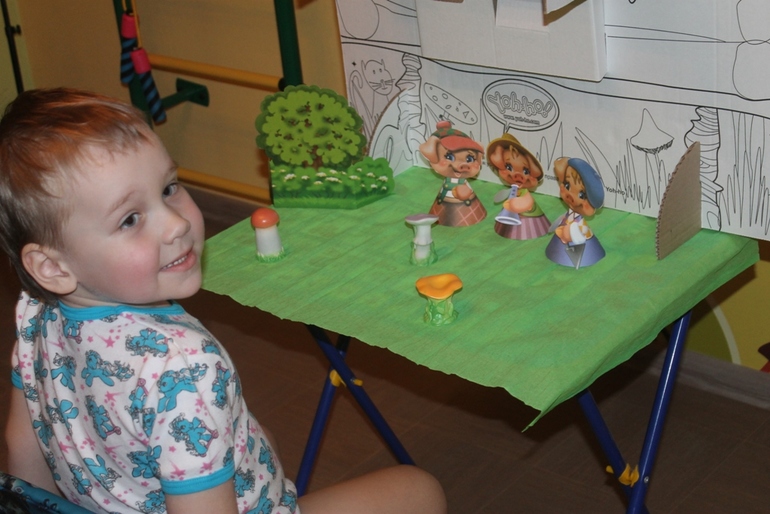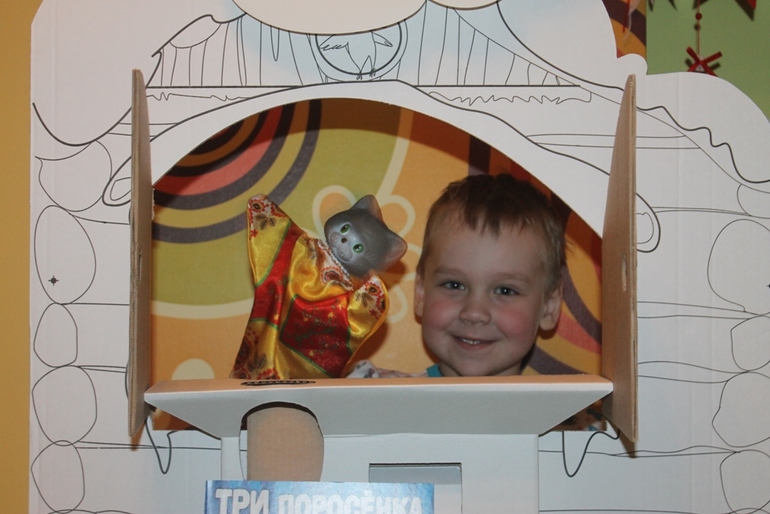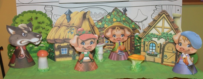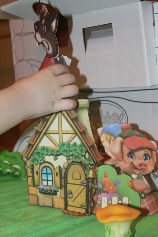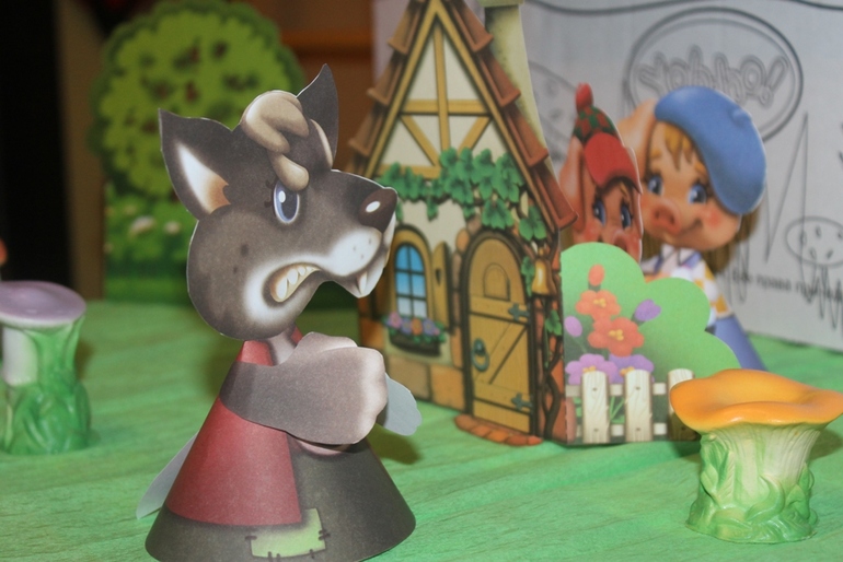 Сегодня у нас представление "Три поросёнка". У нас вот такой настольный театр - конструктор.