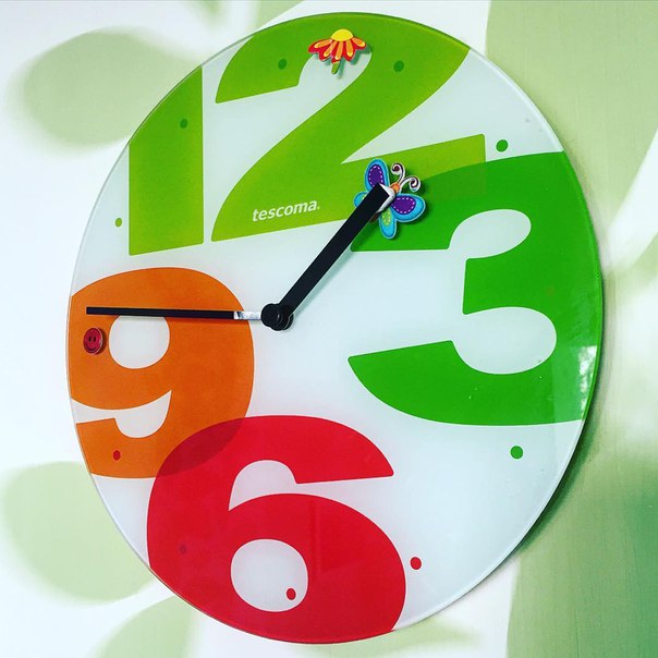 А пуговка (так ее дети называют) всегда на 9 - это время когда мы начинаем готовится ко сну. Мы идем с детьми к часикам и смотрим,Что бабочка уже прилетела на пуговку и нам пора спать. Дети теперь всегда смотрят на часы и уже даже не только на пуговку и цветочек но и на цифры. Хороший способ быстро и весело научить детей понимать время:)