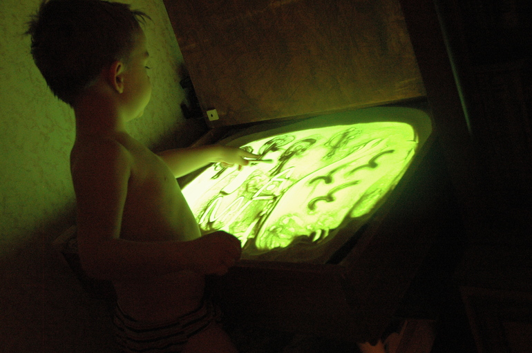 На световом столе мы рисовали лес, деревья, ну и как обычно бабу Ягу в лесу, куда ж без нее....)))
