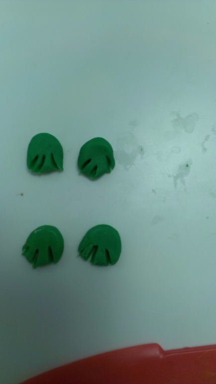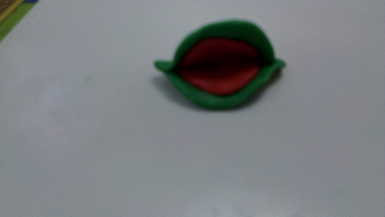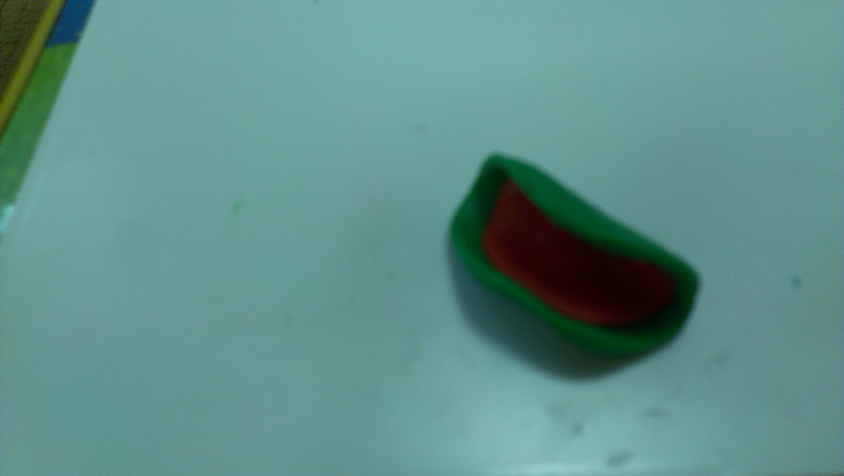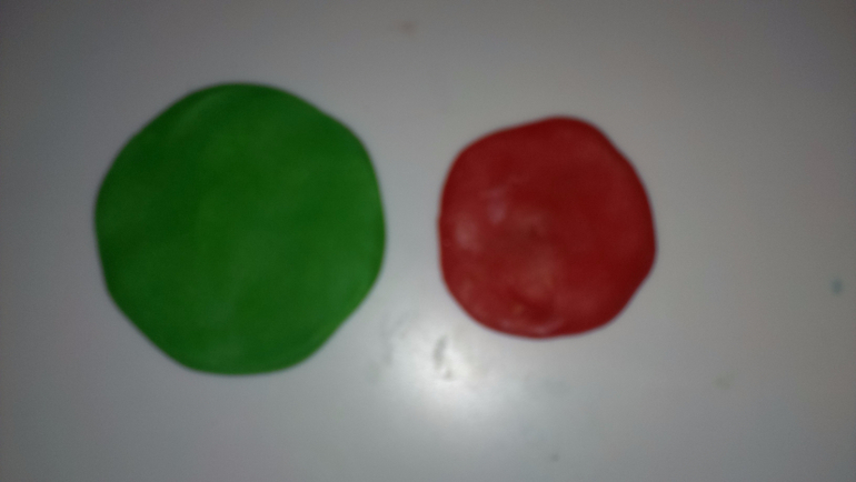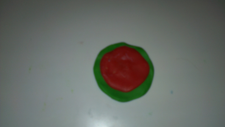 4,Из большого зеленого кружка и красного, делаем такие вот лепешечки.-по тоньше.