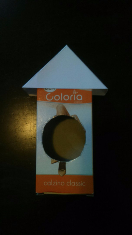 Арина очень огорчалась, что дверца (она так назвала) не открывается, как же туда попадет птичка? И вспомнив про птичек из салфеток попросила сделать скворечник и для них, я на скорую руку только и придумала, что сделать из коробочки от носочков)))) раскрасить надо было, но время уже было позднее, а на следующий день Арина не захотела раскрашивать и так играла, ей все равно, что там ноги торчат))