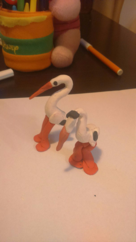 Вдохновившись пластилиновыми аистами, Арина по образу и подобию нарисовала аиста на бумаге, вырезала его и сказала, что это подарок бабушке Тане) так и лежит в ее рюкзачке)
