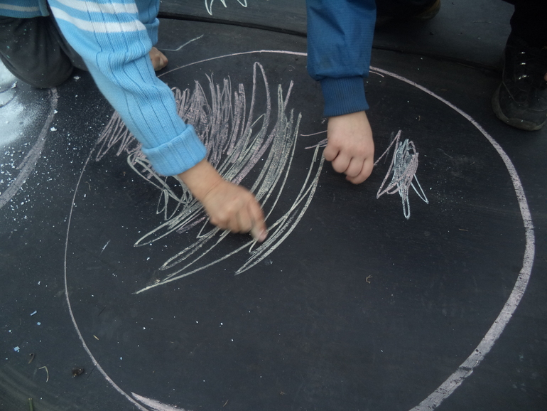 Двигаемся дальше- Марс. Разглядели горы, а самая высокая гора Олимп. Марс раскрасили красным мелком (сосед прибыл на помощь девчонкам):