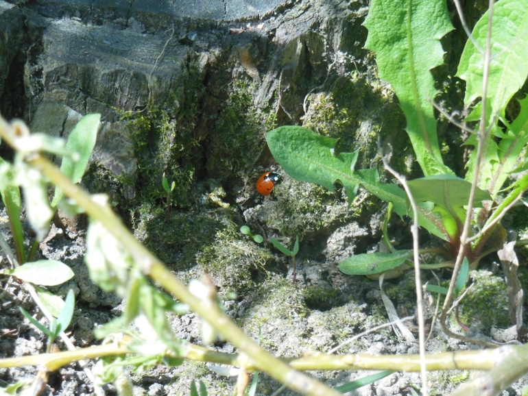 "Немного за тротуаром" отличная полянка одуванчиков. Также там нашли жука, божьих коровок и пенек)