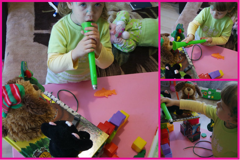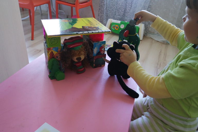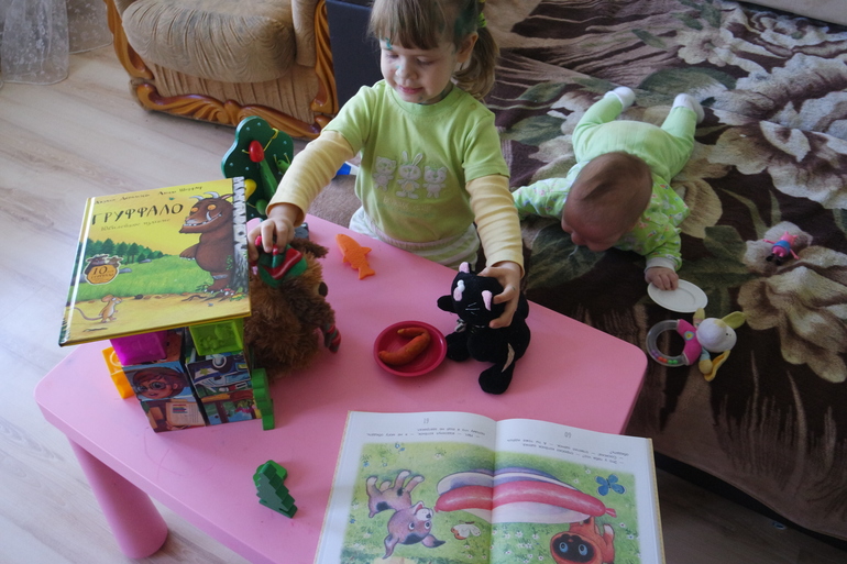 У Лизы дизартрия, я мало, что понимаю из её речи. Вопросов "что дальше" она не задает, или я не понимаю.... Поэтому и играем ))) Истории слушает с удовольствием.