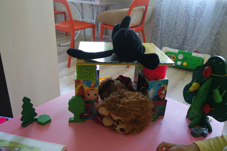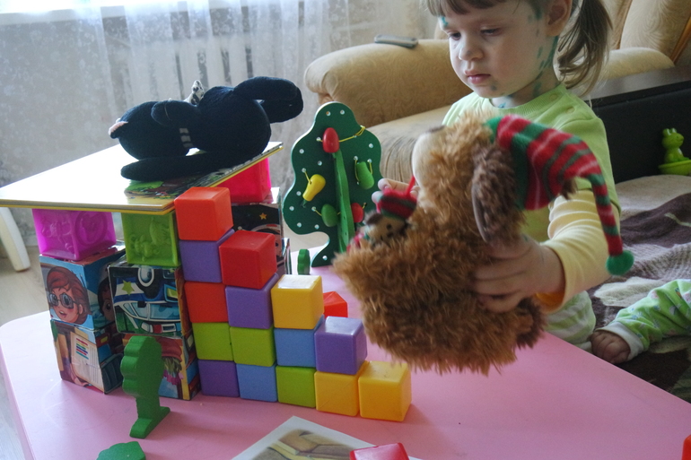 Ему дом из кубиков Юля строить не дает