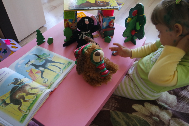 Какое отличное занятие! Ветрянкой болеете? Мы в конце февраля тоже по очереди все переболели. У меня Сашка в районе 2х лет безумно любил кошек, "котенка гав" и читали, и играли, и мультики смотрели не переставая)))