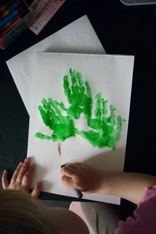 Сашуля решила изобразить цветущее деревце. Занятие очень понравилось, поставила на столик. будет ждать папу))