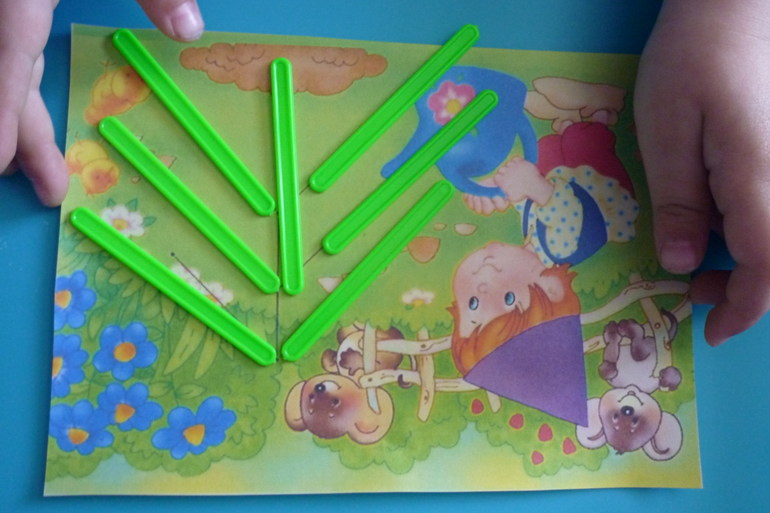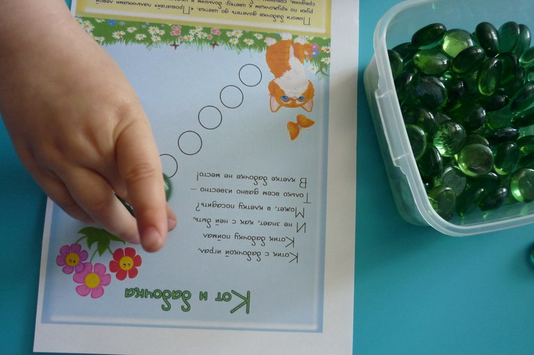 необходимо разложить камушки по кружочкам, а затем пройти пальчиками. У Саши и здесь должен быть порядок.. камушек строго в кружок)))