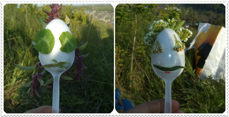 На несколько ложек прицепила двухсторонний скотч и попросила Арину сделать лицо из того что она найдет. Вот что получилось: