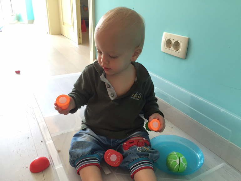 Безусловным игрушечным хитом месяца стала эта дощечка. Брали с собой в поездки, дома играли ежедневно по несколько раз. Изначально использовал только левую руку, видимо, в силу того, что эти дверцы открываются влево - удобнее делать это левой рукой. Очень здорово натренировал её. Стал активно манипулировать обеими руками, хотя правая, конечно, преобладает. Но множество мелкомотрных действий совершает левой рукой.