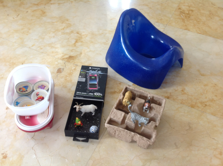Очень нравятся игры с мелочевкой - этот глобус и телефон с монетками полностью нам покорились в качестве сортеров. А поначалу было ох, как тяжело!