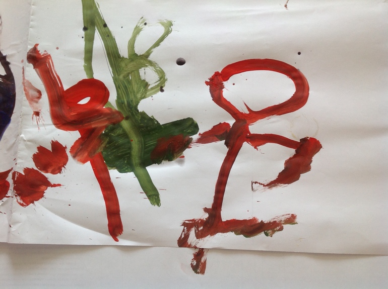 Творческое развитиеМаша уже давно любит рисовать окружности или нарисует какую-то абстракцию и говорит,что это волк,заяц или еще какая зверюшка.А вот сегодня она стала рисовать папу.И мне озвучивала "голова,нога.."Я спрашиваю где ручки,она нарисовала ручки и решила подрисовать к ним пальчики.На фото папа справа)