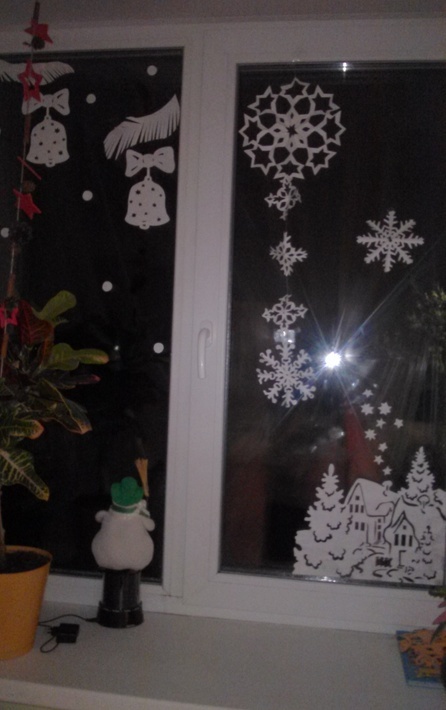 По традиции вырезали вытынанки и украшали окна!!! :))