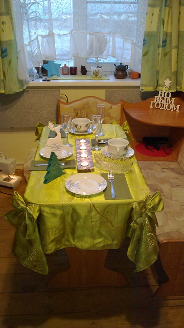 Начну с убранства дома! Я сшила скатерть и вырезала из дерева новогодние уютные предметы декора, дабы создать атмосферу волшебства и праздника!