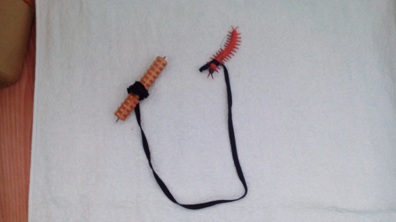 8.Ползающая гусеница. Эффектнее было бы, если нитку привязать, чтобы не так заметно было. Но Димка вырвал конструкцию, ему и так весело было "возить" гусеницу за веревочку))