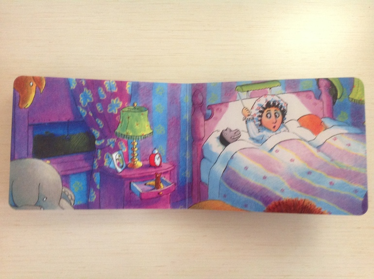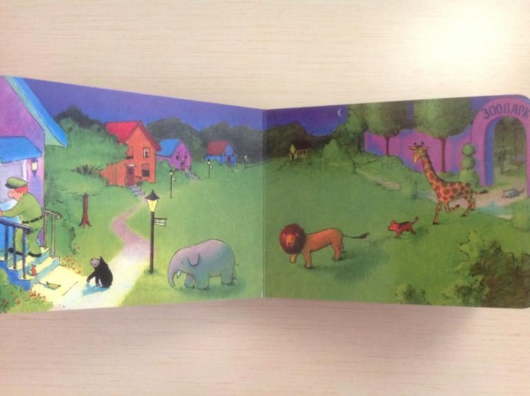 На последнем развороте я произношу замогильным голосом "И тут....в темноте сверкнули чьи-то глаза! " Затем раздаётся (мой) визг жены сторожа. Мой живчик уже заранее заливисто хохочет. Помимо всего прочего на каждой страничке надо найти мышонка с бананом, что у нас неплохо получается.
