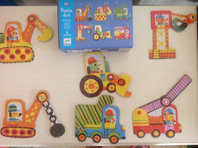 Интерес к технике растёт семимильными шагами, буду надеяться, что подобный вариант первых пазлов окажется беспроигрышным. На прогулках готовы облобызать каждую машину, потискать мотоцикл, поздороваться со старой лодкой. Есть фавориты, пользующиеся особой любовью и пройти мимо которых, не остановившись, приравнивается к личному оскорблению.