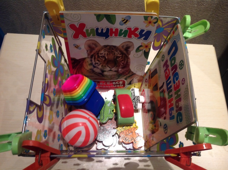В кроватку с вечера подкладываю "антивандальную" коробочку - в ней книжечки, карточки, про прищепки уже написала, вообщем все то, что может подарить маме несколько лишних минут утреннего блаженства.