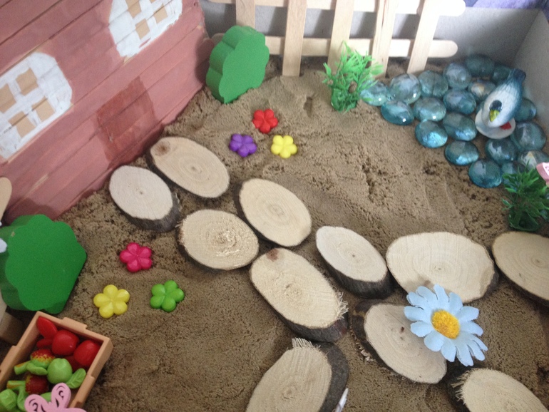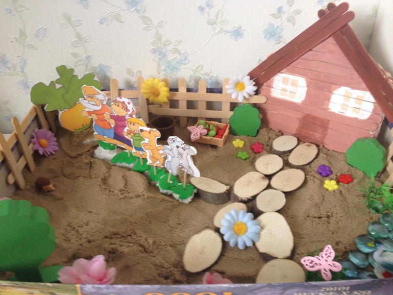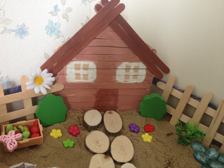 домик и забор мы делали в один день (клеили и раскрашивали). а уже всю композицию делали в др. Дочка не устала, так как разделено на несколько дней, и разная деятельность)