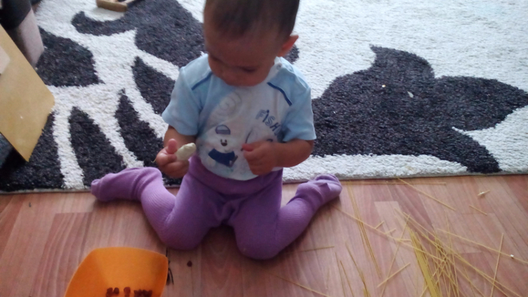 -делали муравейник из пластилина, спагетти. На спагетти нанизывали "муравьев"-изюминки и втыкали в пластилин