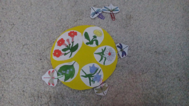 -сажали, ну а в нашем случае, снимали с цветков стрекоз. Игра со скрепками