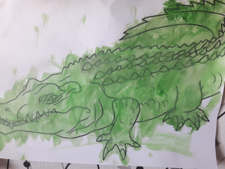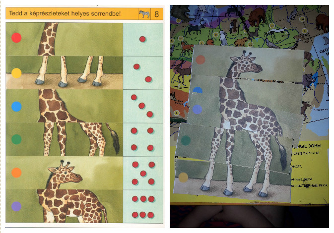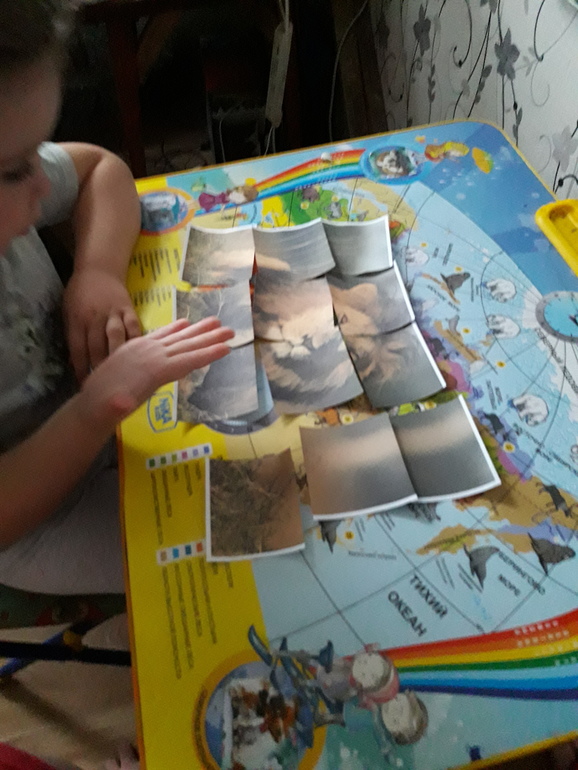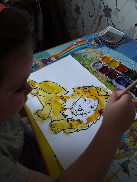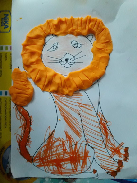 Начали с Льва, потому что он "царь зверей", пытались собрать пазл из картинки, но изображение я подобрала не удачное и пришлось помогать)
