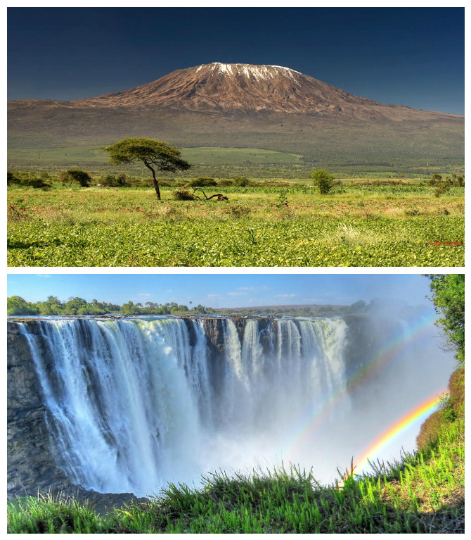 Рассматривали природные достопримечательности: водопад Виктория и вулкан Килиманджаро: