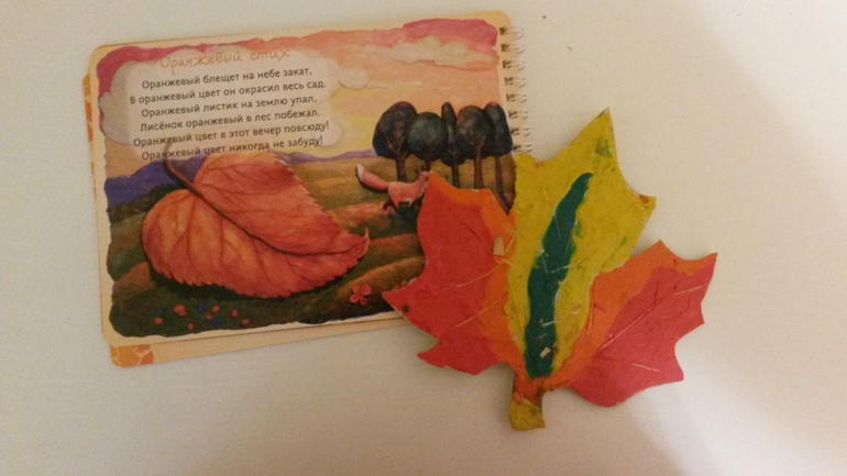 Выучили оранжевое стихотворение и сделали листочек из пластилина.