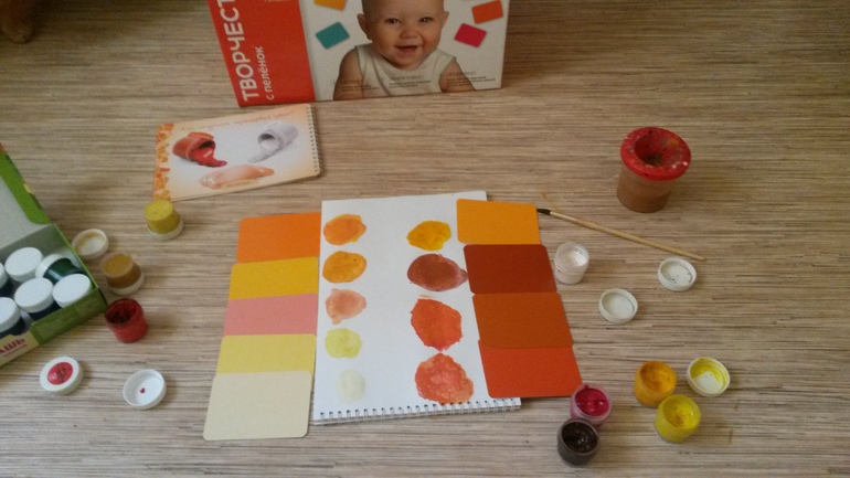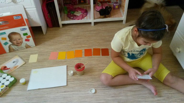 Начали творить. Смешивали цвета, пытались повторить оттенки.