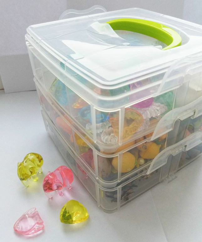 Очень удобно хранить материалы которыми собираемся воспользоваться в ближайшее время в контейнерах от стола из икеа