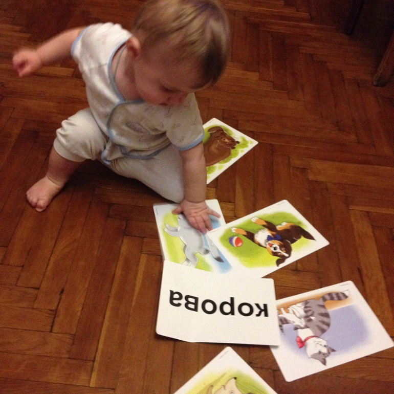 Сегодня начали новый этап в Чтении) изучаем карточки с животными, наобороте написано их название. Выбрали тех животных, которых мы знаем. Видели в книжках, или на других карточках. Посмотрели, и перешли к нашей любимой части) Начали ползать по ним и есть их) Обычно, стараюсь играть в карточки хотя бы 3 раза в день, но сегодня получился только 1раз. Ездили в гости к родственникам, а там живёт кролик) Эмоций много) И самые разные: Удивление, радость, испуг, любопытство. Мирослав долго пытался вытащить его из клетки. А я как - то с ходу и не вспомнила, кто такой кролик. Сказала только, что это животное с длинными ушами, которое делает Прыг-прыг. Когда пришли домой, я достала карточку кролик, показала и рассказала (благо на обороте есть информация) Вообще иногда в ступор вводят некоторые предметы. Как объяснить ребёнку: Что такое солнце? Что такое дождь? Небо? Луна? А это ещё у нас не начался возраст "почемучки". Вот тогда мне придётся голову поломать