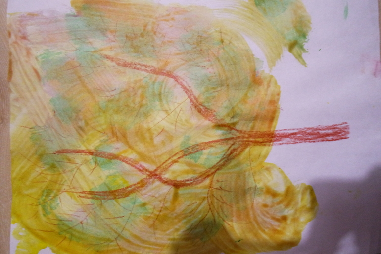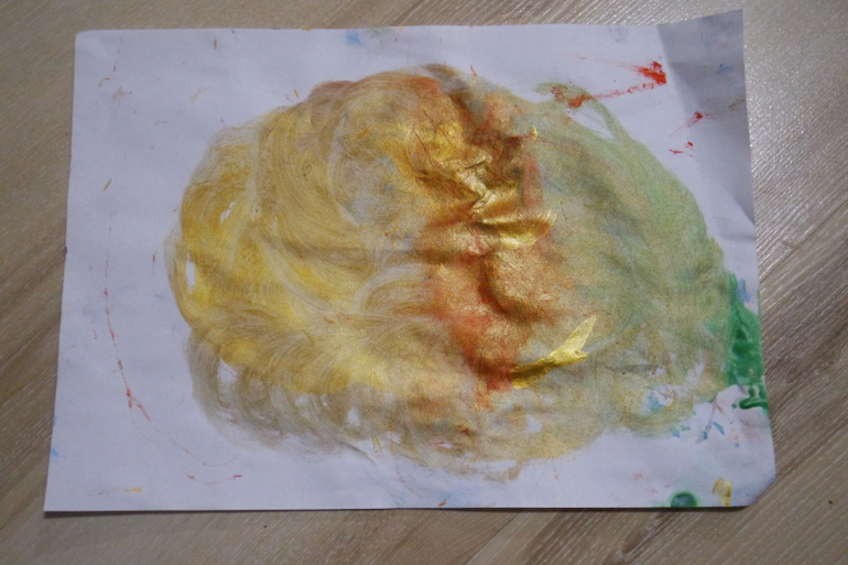 Аннушкина живопись маленькой губкой и пальчиковыми красками.